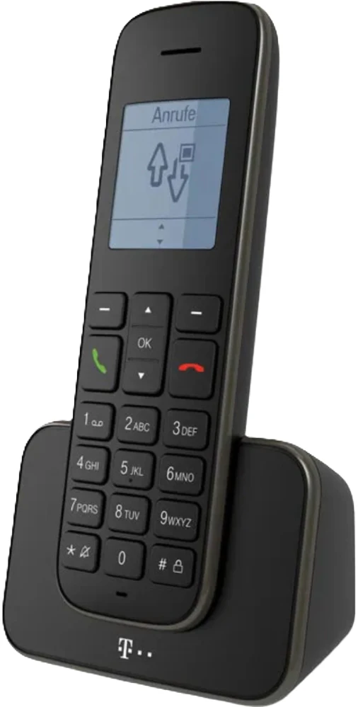Schnurloses DECT-Telefon-Kombination mit integriertem Anrufbeantworter (20 Min. Aufzeichnung) im Einstiegsbereich, bestehend aus einer schnurgebundenen Basisstation und einem Mobilteil mit Ladeschale, geeignet für den Standardanschluss.