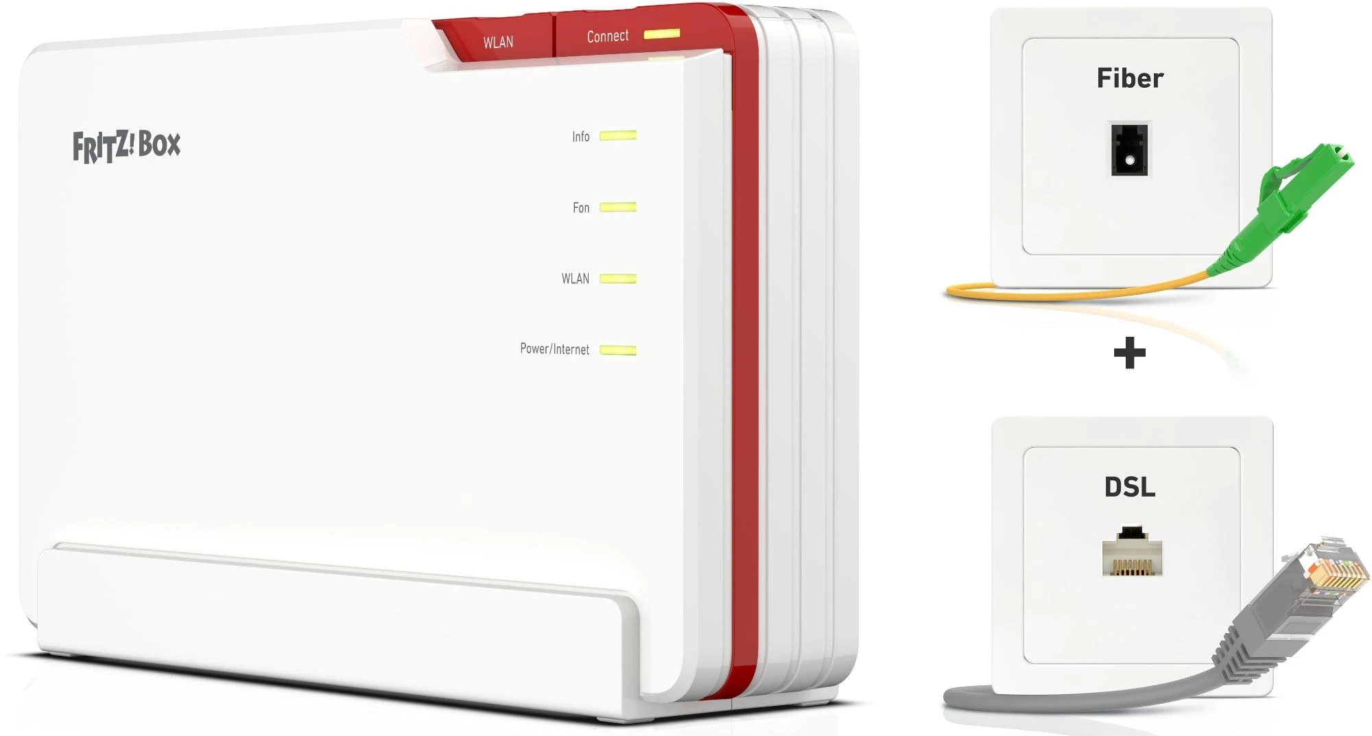 Je nach Verfügbarkeit des Funks wechselt die FRITZ!Box 6820 LTE flexibel zwischen dem LTE- und dem UMTS-Netz. Auf besten Empfang und Mobilität ist auch das Design der FRITZ!Box 6820 LTE ausgelegt. Das Gehäuse steht aufrecht, wodurch die Empfangsleistung nochmals verbessert wird. Die handliche FRITZ!Box 6820 LTE lässt sich fast überall aufstellen, wo eine Steckdose vorhanden ist, und bequem transportieren. Zusätzlich steht ein schneller Gigabit-LAN-Anschluss für ein weiteres Netzwerkgerät zur Verfügung.